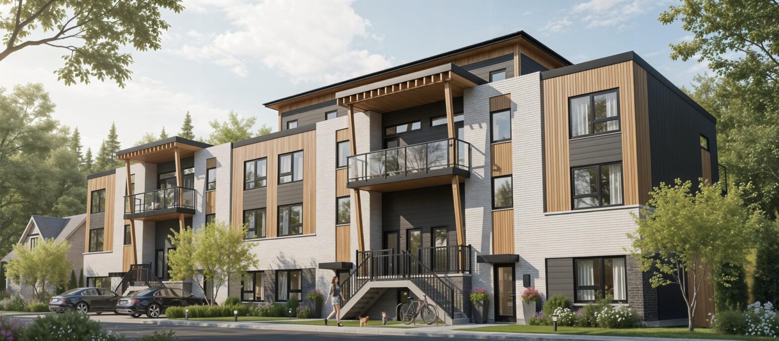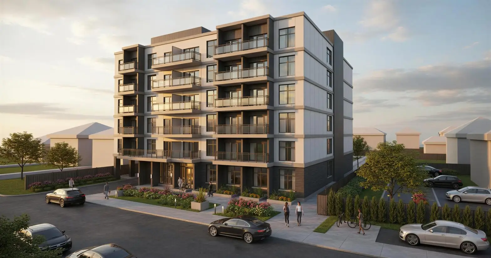 6 Storey, 70 unit apartment with a mix of studio, 1 bedroom and 2 bedroom units. The highly efficient design is located across from a public school along a minor corridor and near a transit station in Ottawa. It is the first apartment of it’s kind in an area transitioning towards mid-rise buildings. It comes with plenty of amenity space including a rooftop patio, basement storage lockers and 22 parking spaces. This project has been designed to be built as modular construction in a factory. This process ensures higher quality, faster construction and fewer headaches. Construction anticipated in late 2026.