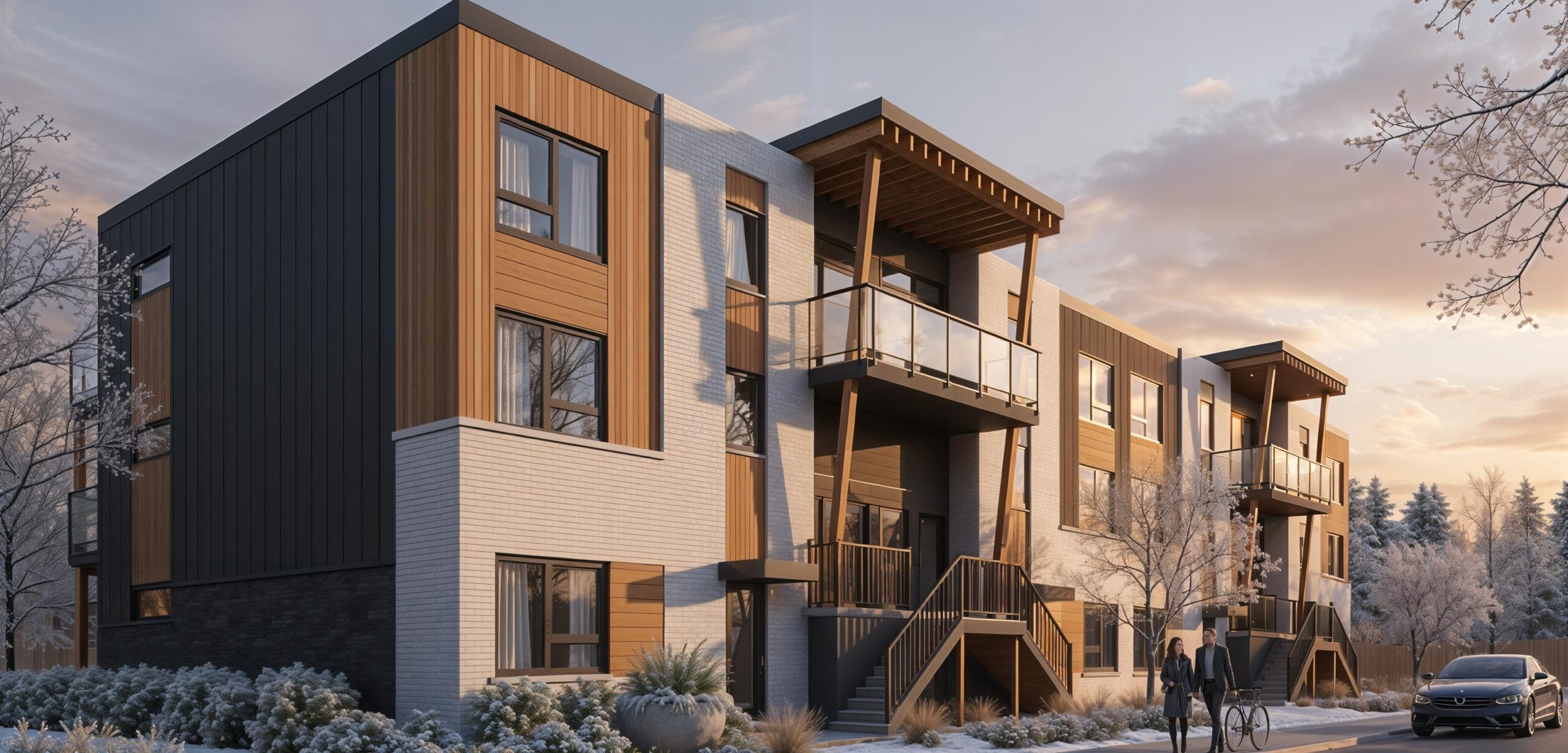 This project based in Trenton is a 3 storey slab on grade apartment with 12 units, a total of 12,000 sft.The design features all 2 bedroom units +/- 950 sft each, with in-suite laundry, private entrances and balconies.We took the site through a re-zoning and site plan approval to permit higher density. Construction to start spring 2026.